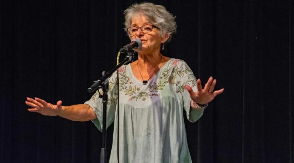 Angela Oseland tells her original story about a harrowing canoe trip. (Photo by Sandy Webb)